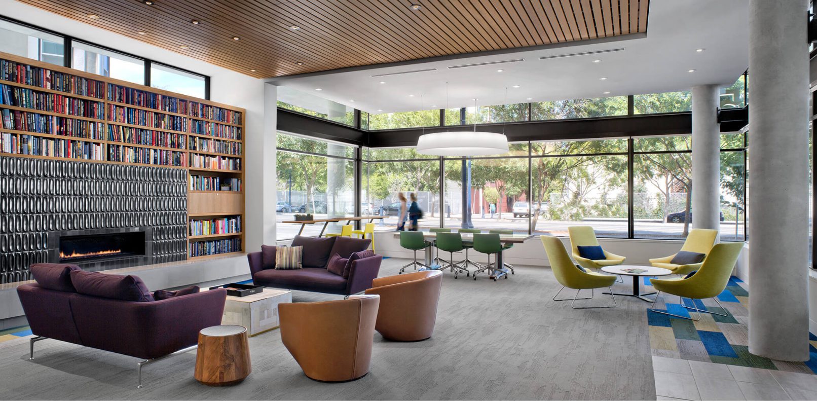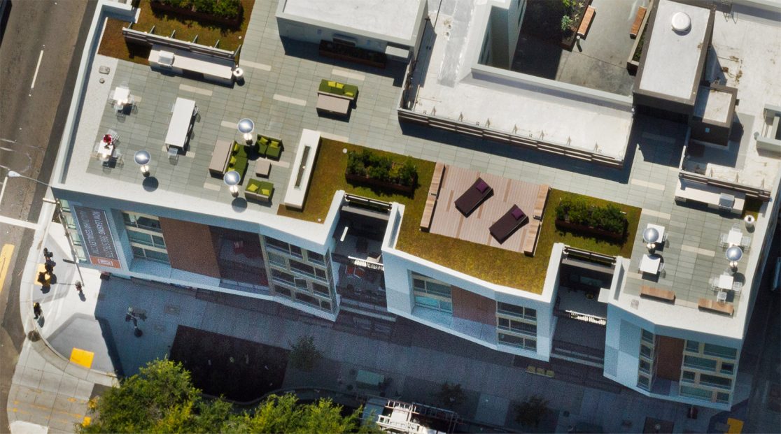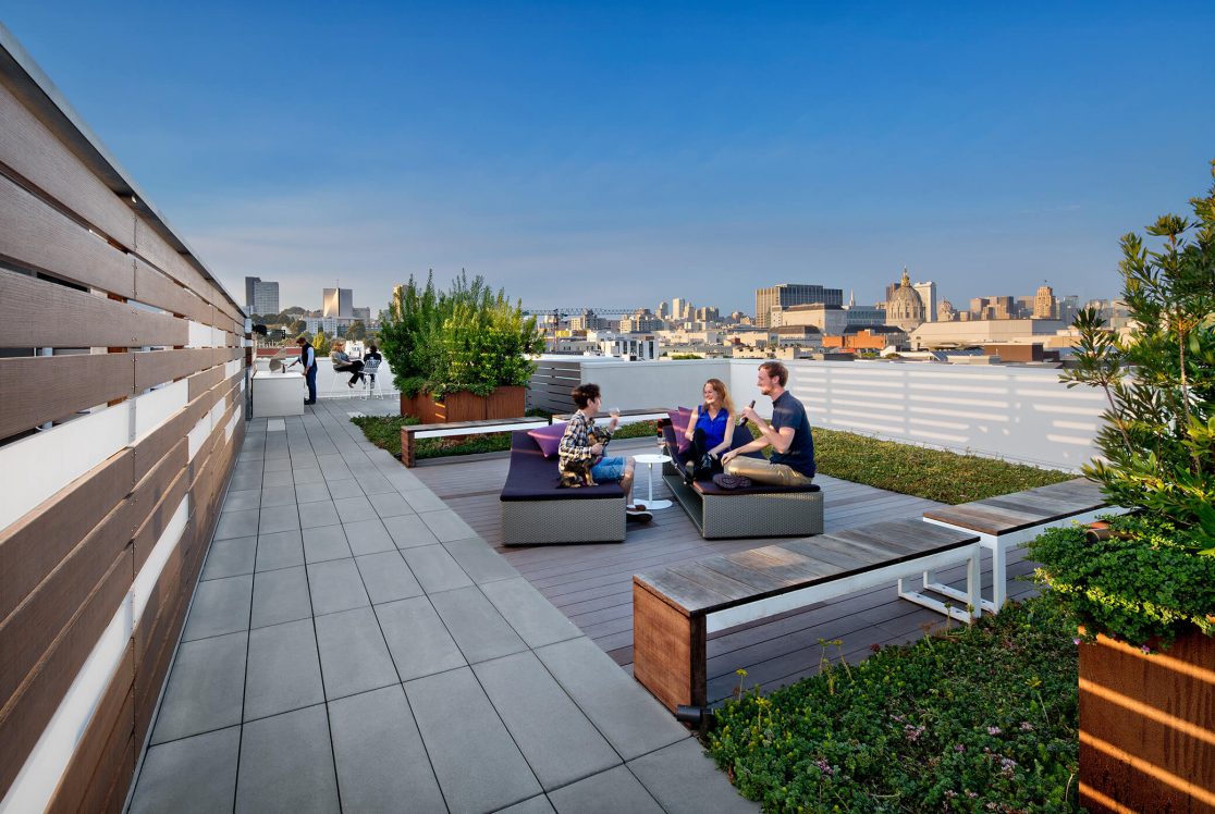 To develop Octavia Boulevard’s Parcel P, Build Inc. teamed with Avalon Bay Communities to adapt the master plan and create 182 apartments. Two large buildings bookend row-house parcels that step up the hill and enclose three midblock courts. We designed the mixed-use Octavia Building: 42 apartments above retail, with a tall portal entrance to the entire complex. The building’s units are organized into five discrete volumes, each topped with its own outdoor room.