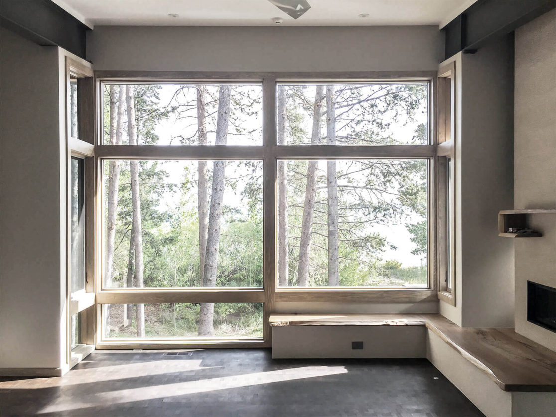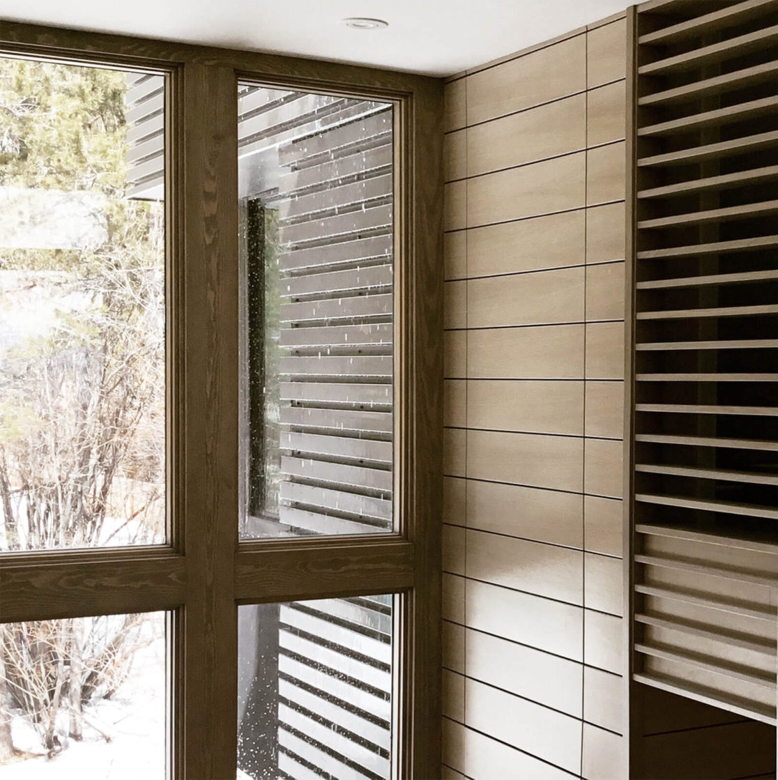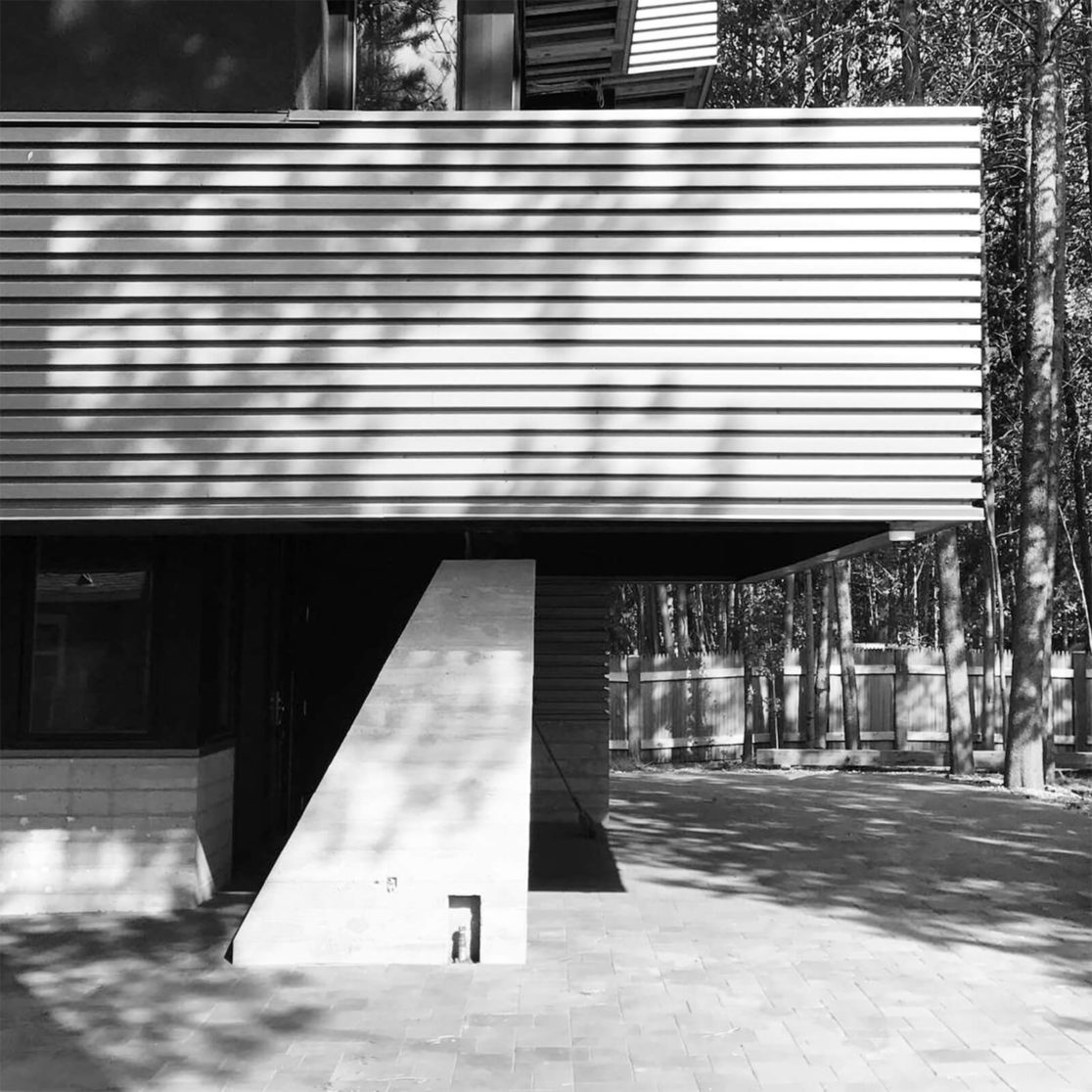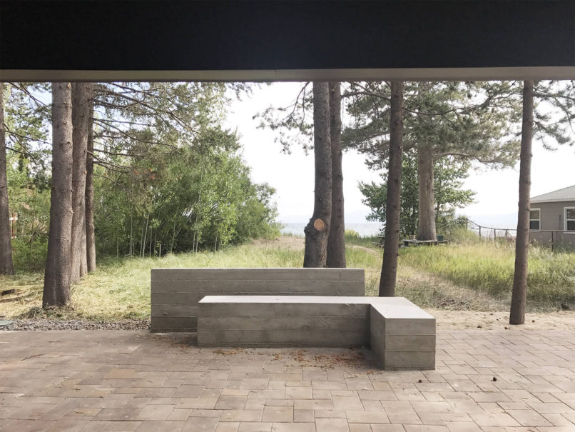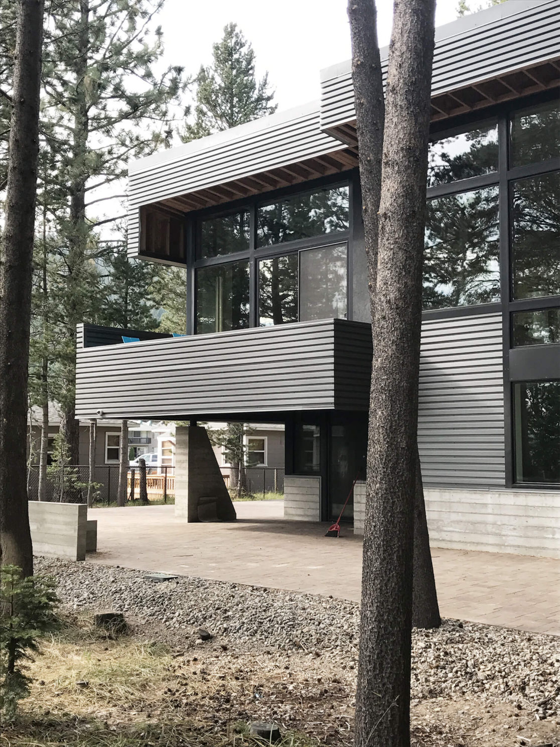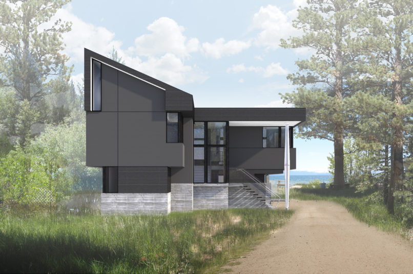 Conceived as three conjoined cabins, this vacation home for an extended family provides an elemental, modern environment for gatherings on the north shore of Lake Tahoe. Responding to codes that require structures to minimize their drainage “shadow,” the design lifts the bulk of the house a full floor above grade with generous cantilevers. This strategy retains the existing spatial flow of the site and creates a sheltered patio at grade.