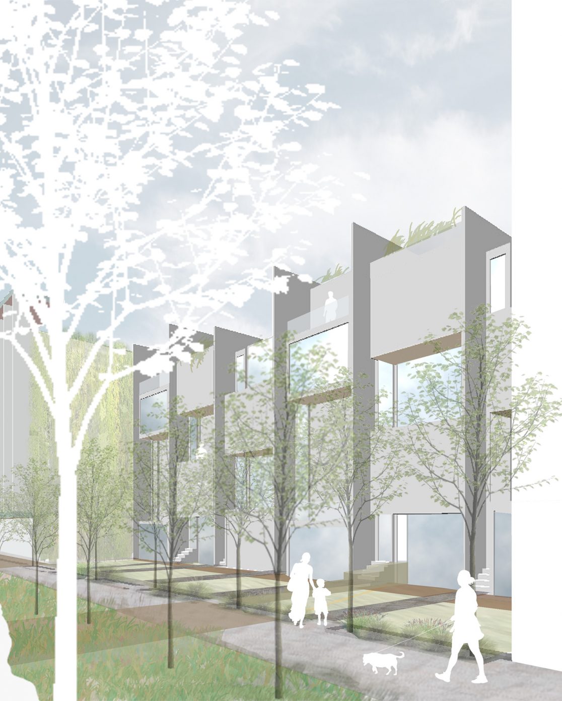 On the San Francisco Bay, this design for 192 dwellings and retail space explores the potential for a new neighborhood in the former Hunters Point Shipyard. Working with the constraints of the development master plan, our proposal organizes buildings of various types and scales around street-level gardens. The result: diverse neighborhood characters, access to verdant landscaping, and a variety of home sizes—quintessential qualities of San Francisco urbanism.