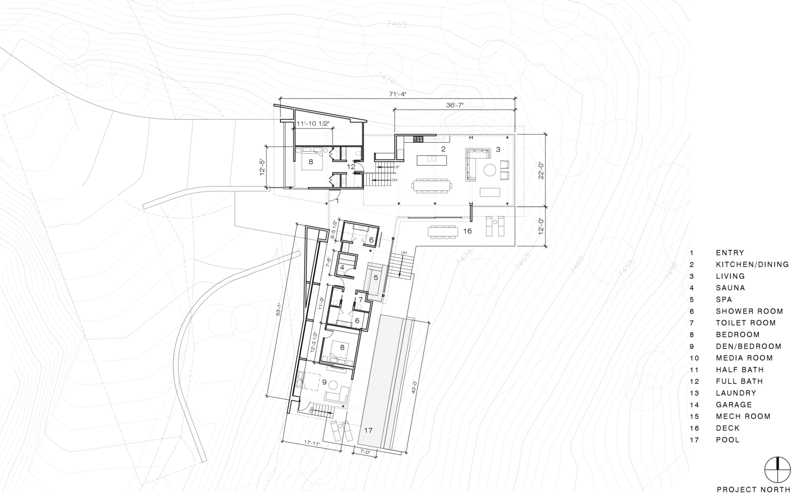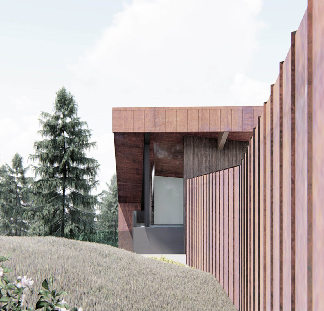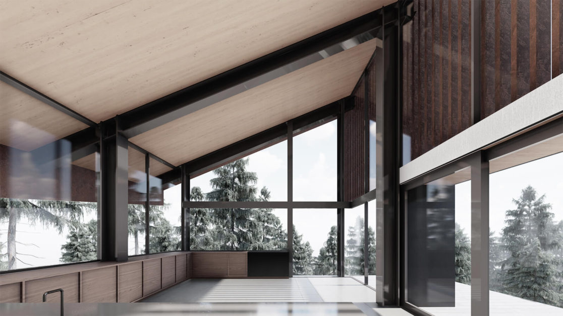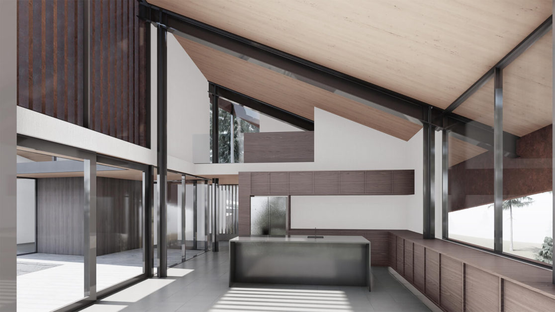 Nestled within National Forest on a steep slope of Mt Rose, we designed a new house to offer refuge from the elements, while taking in sweeping views of the Virginia Mountains and city lights of Reno. Two linear, steel-clad volumes grow from the land; the living wing extends gracefully into the trees; the other hunkered into the terrain with peaceful bedrooms. Where the two volumes come together, a spa with sauna, hot tub and pool provide a relaxing and social gathering space.