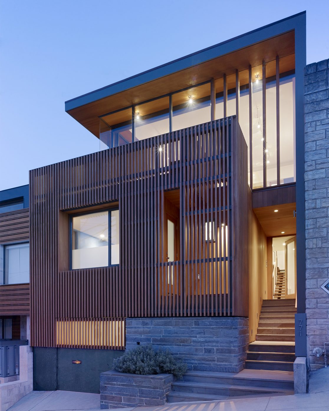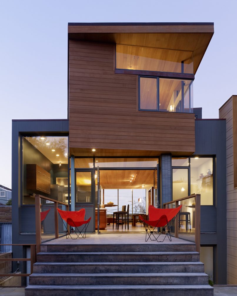 Two floors are added atop a 1949 row-house to accommodate an active family in flowing, informal living space.
